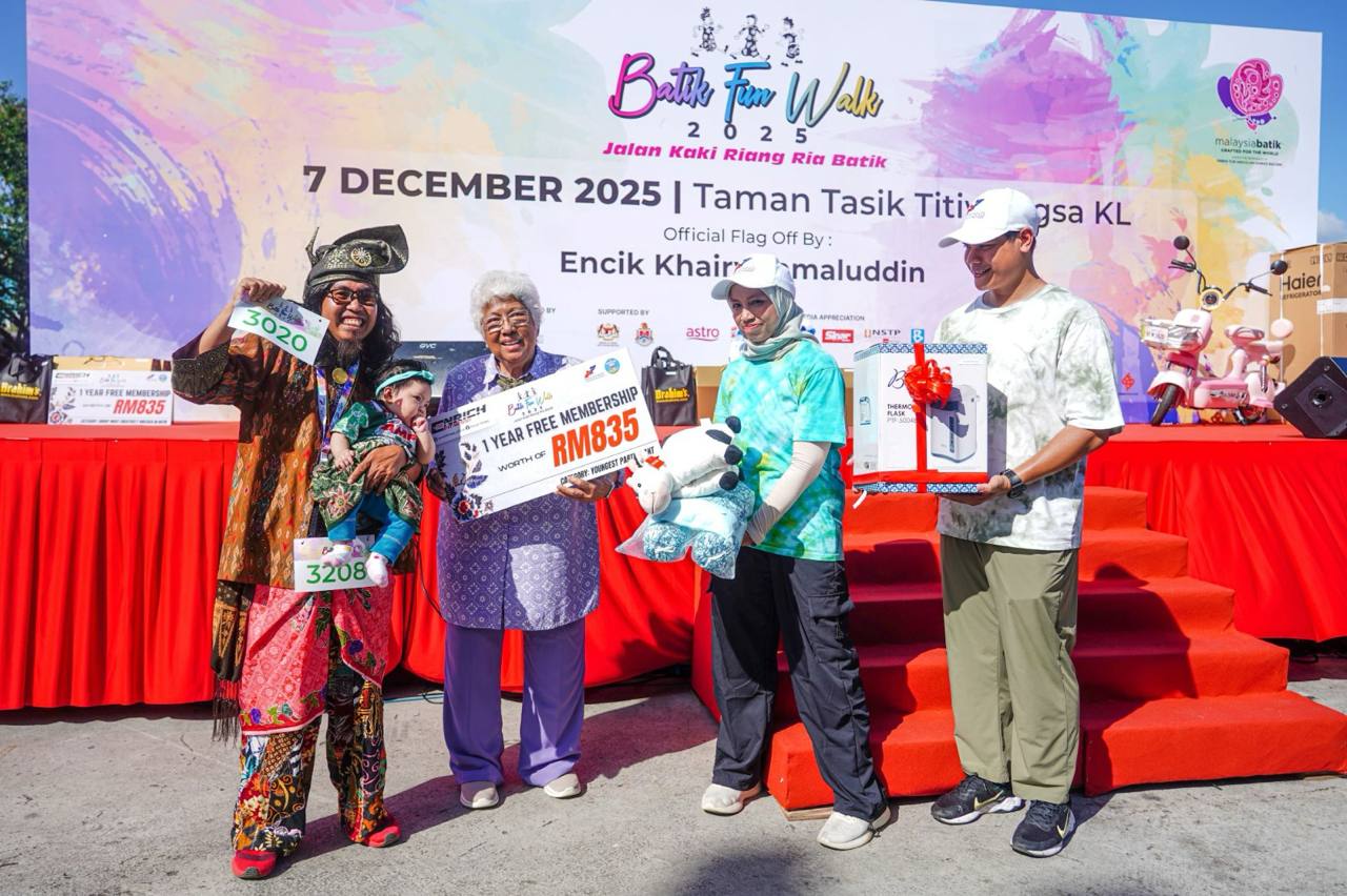 KUALA LUMPUR: Seorang peserta Batik Fun Run 2025 memilih memakai maskot kepala burung dan mengenakan pakaian batik kuning bagi mewarnai acara jalan kaki di Taman Tasik Titiwangsa, di sini. Azaril Amir Yahya, 44, berkata, pakaian beliau membawa tuah pada dirinya apabila berjaya memenangi hadiah bagi kategori Individu berpakaian Batik Paling Kreatif di acara jalan kaki sejauh 3.8 kilometer (km) itu. Menurutnya, beliau sudah menyertai program tersebut sebanyak empat kali dengan…