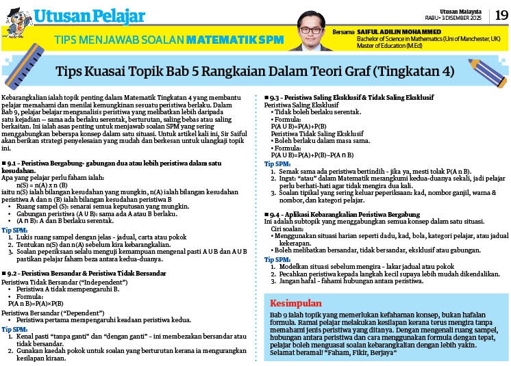 Tips Matematik (Tips Kuasai Topik Bab 5 Rangkaian Dalam Teori Graf (Tingkatan 4)