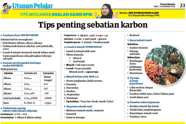 Tips Menjawab Soalan SAINS SPM (Tips penting sebatian karbon)