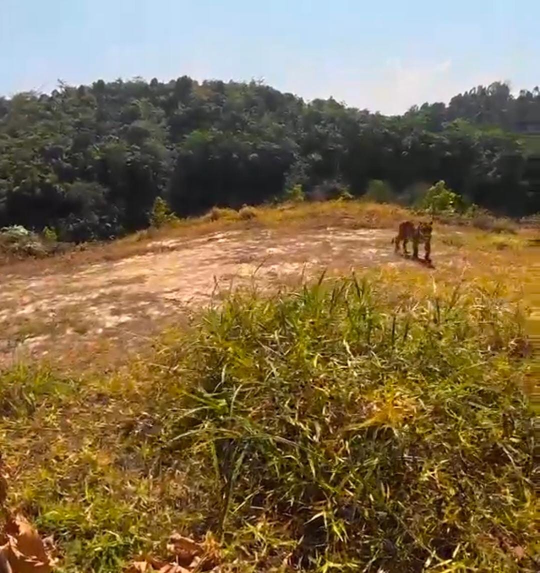IPOH: Tular di media sosial dua rakaman video memaparkan detik cemas sekumpulan individu terserempak dengan seekor harimau belang di sebuah kebun durian di Bukit Kinding, Chemor di sini, Ahad lalu.