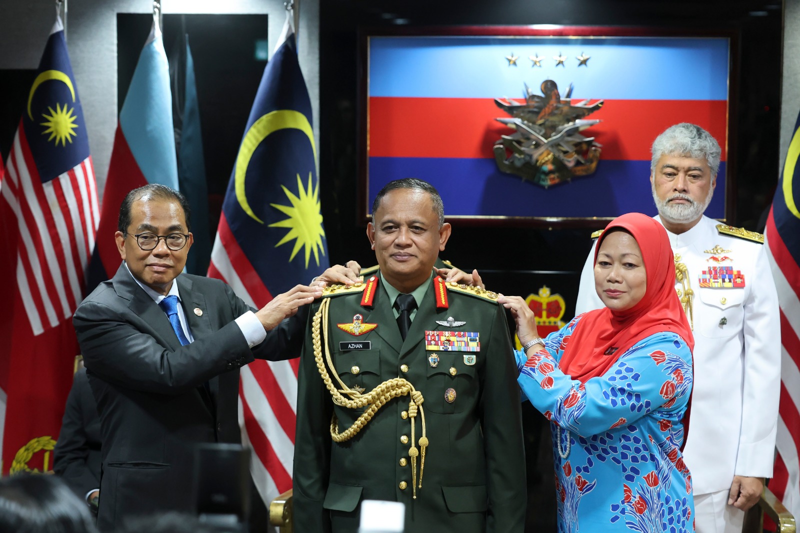 Pemakaian pangkat tersebut disempurnakan oleh Menteri Pertahanan, Datuk Seri Mohamed Khaled Nordin dalam satu Majlis Pemakaian Pangkat Panglima Tentera Darat ke-31 di Wisma Pertahanan, hari ini.
