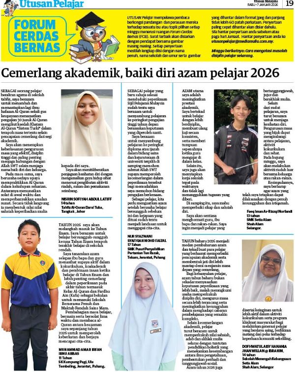 PETALING JAYA : Tahun baharu 2026 menjanjij 1001 macam cabaran tetapi pelajar tetap bersemangat untuk cemerlang dalam akademik