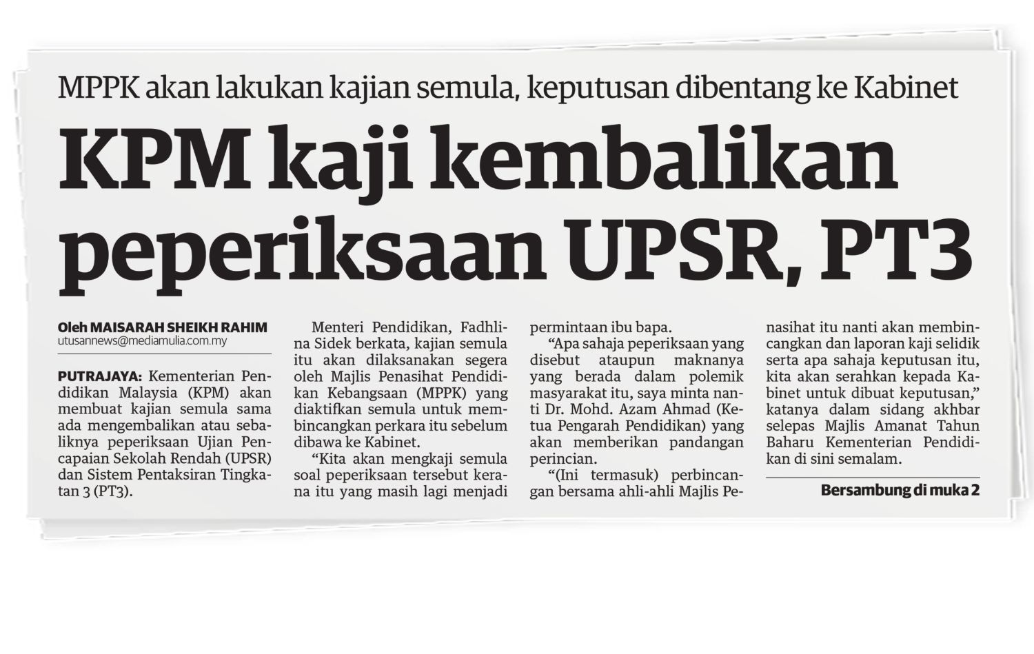 PETALING JAYA: Cadangan Kementerian Pendidikan Malaysia (KPM) mengembalikan peperiksaan awam seperti Ujian Pencapaian Sekolah Rendah (UPSR) dan Pentaksiran Tingkatan Tiga (PT3), wajar dalam menangani kelemahan sistem penilaian pendidikan sedia ada. Presiden Majlis Permuafakatan Persatuan Ibu Bapa dan Guru Nasional (PIBGN), Prof. Madya Datuk Dr. Mohamad Ali Hasan berkata, situasi tanpa peperiksaan nasional yang bersifat piawaian menyukarkan penilaian prestasi pelajar secara adil dan telus. Katanya, pelaksanaan pentaksiran berasaskan sekolah semata-mata boleh…