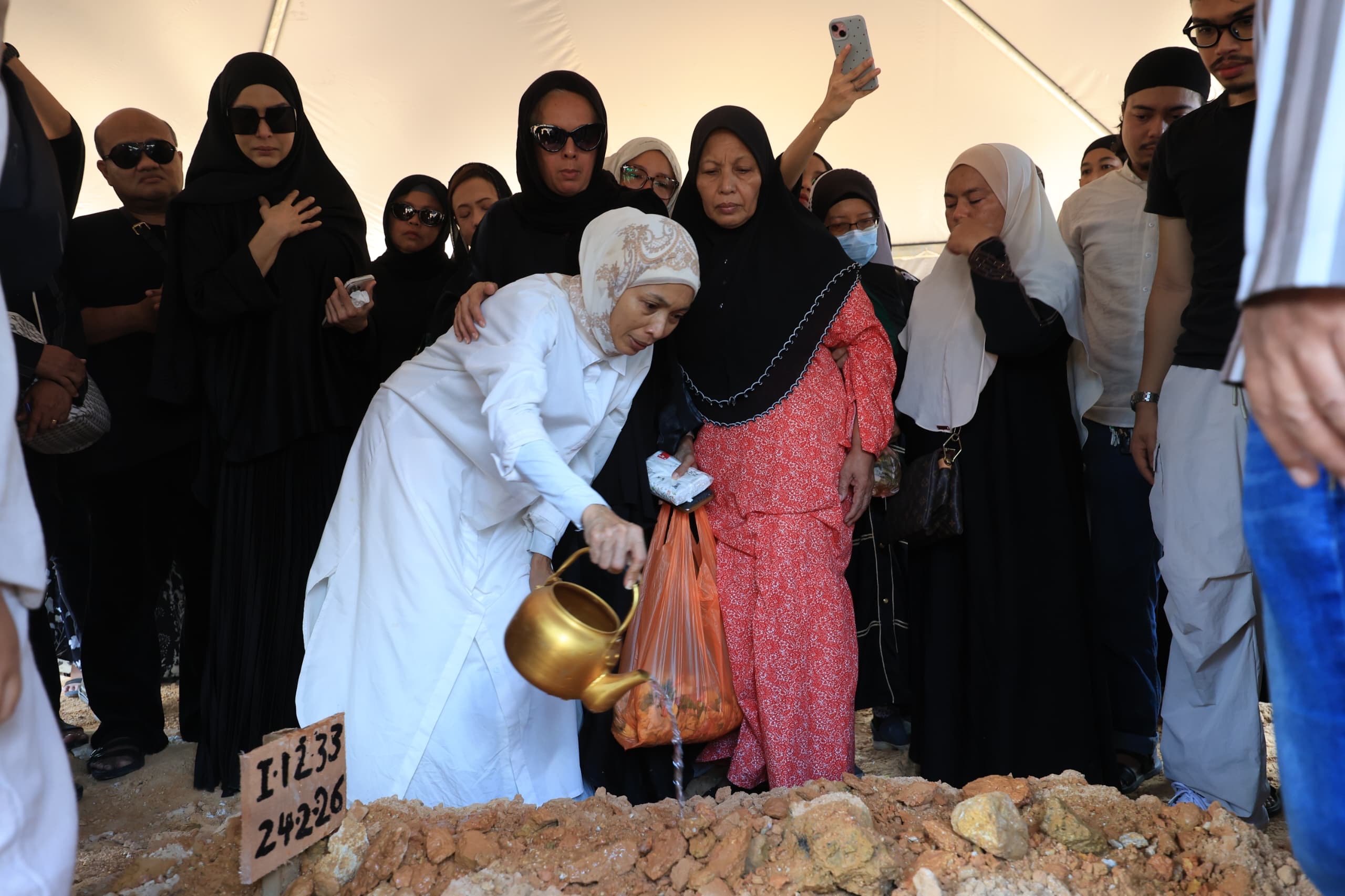 Terdahulu, jenazahnya dimandikan dan disolatkan di Masjid Al-Khairiah AU3.