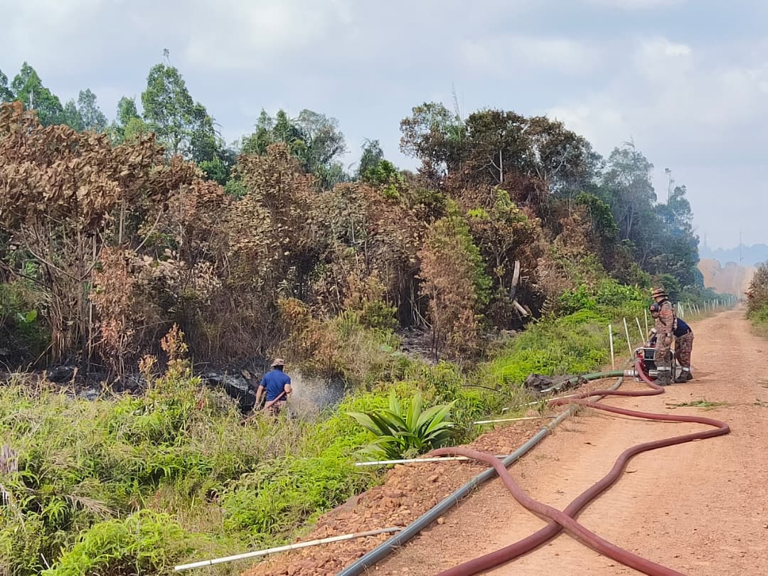 Soleh berkata, pemantauan udara mendapati api semakin berkurangan, namun kepulan asap masih tebal susulan terdapat tanah gambut dan tunggul kayu terlibat.