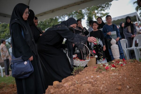 Ustaz Rafuwan Putra Affendi, turut membacakan talkin selepas Allahyarham dikebumikan, yang dihadiri keluarga dan sahabat di tanah perkuburan itu.