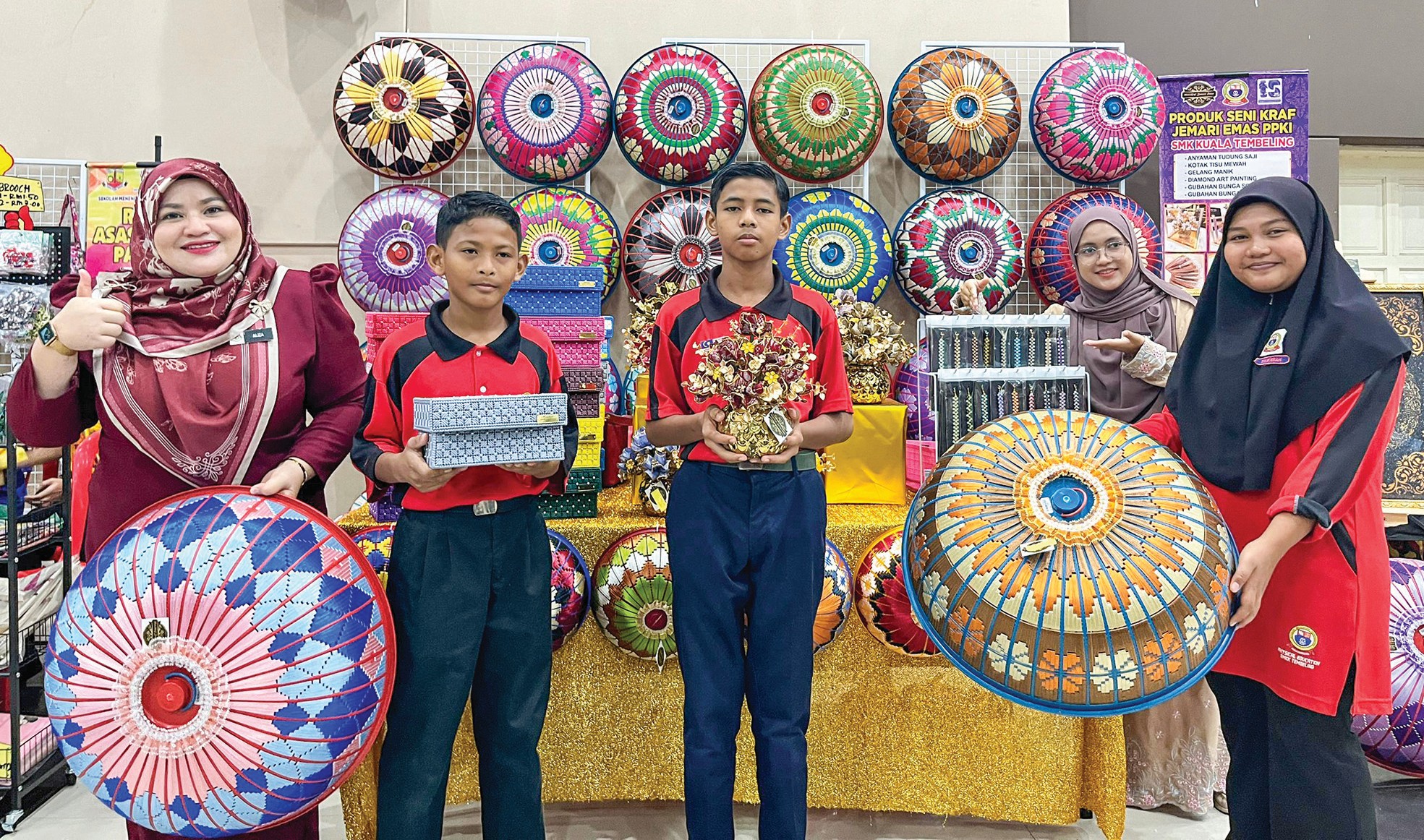 “Hasil bimbingan berterusan ini, enam produk utama berjaya dihasilkan termasuk gubahan bunga songket, kotak tisu hiasan, gelang manik, tudung saji anyaman bersaiz kecil dan besar serta Diamond Art Manik,” katanya ketika ditemui baru-baru ini