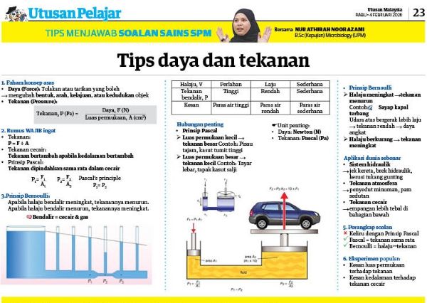 Tips Menjawab Soalan Sains SPM (Tips daya dan tekanan)