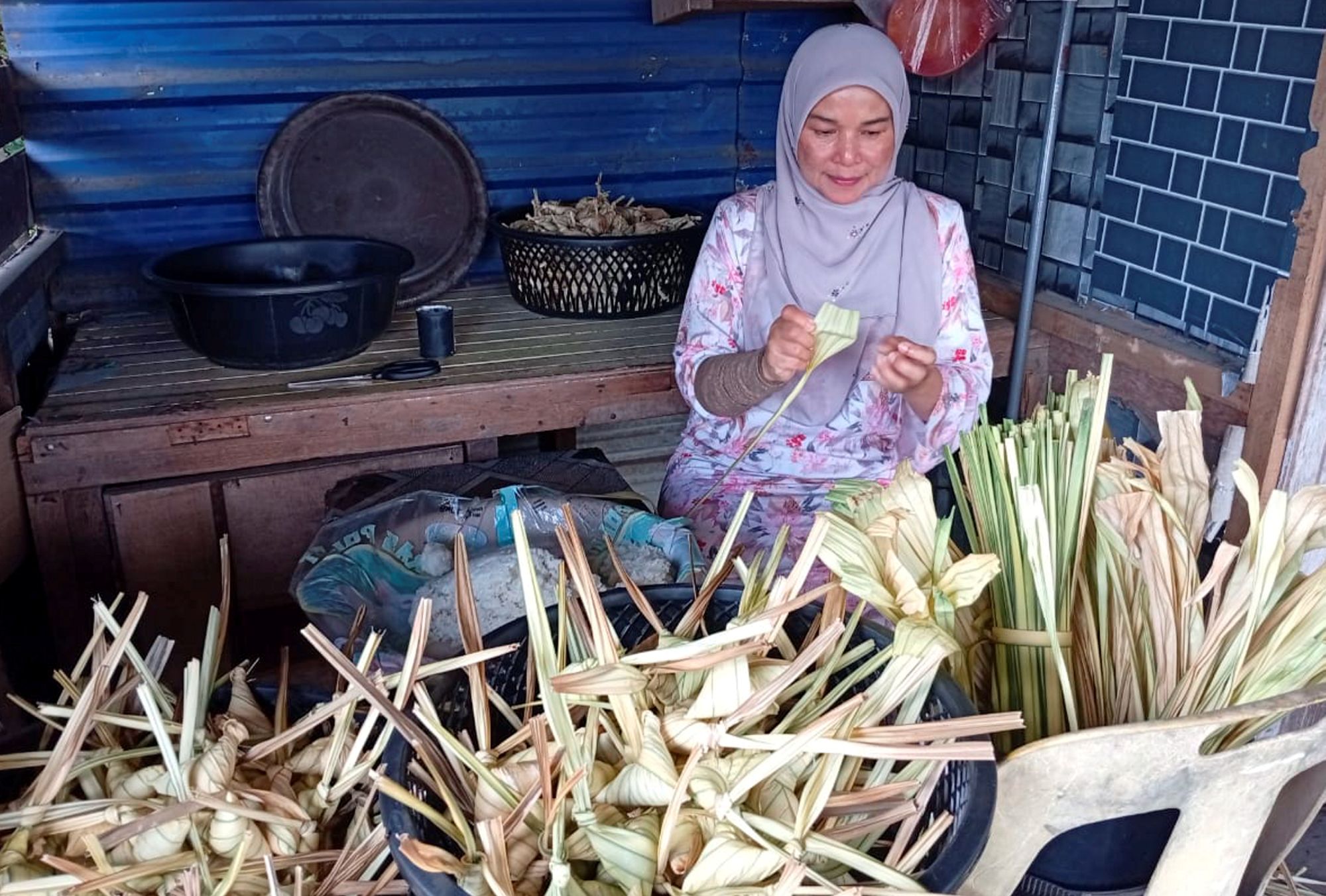 KUALA TERENGGANU: Setiap kali menjelang Syawal, Faridah Mamat, 50, sibuk membungkus ketupat daun palas di gerainya di Kampung Manir, di sini bagi memenuhi permintaan pelanggan menjelang sambutan Hari Raya Aidilfitri. Peniaga dari Kampung Tetambah itu berkata, ketupat daun palas antara juadah tradisi yang menjadi pilihan orang ramai untuk dihidangkan pada pagi hari raya. Katanya, dia sudah hampir dua dekad mengusahakan perniagaan tersebut selepas mula menjual ketupat daun palas ketika berusia…