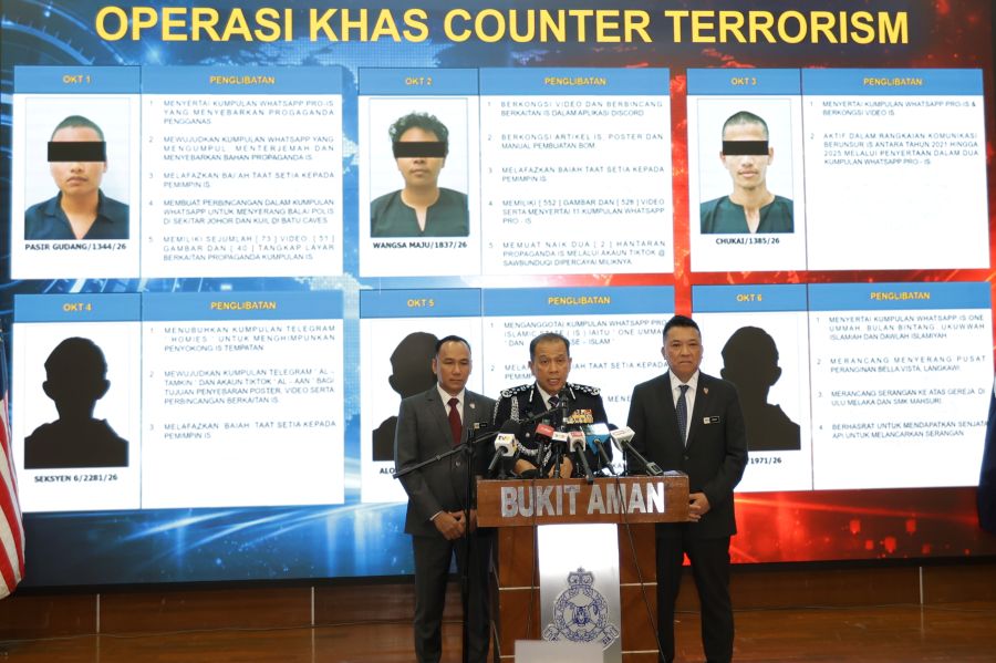 Mengulas lanjut, Mohd. Khalid berkata, penahanan enam suspek itu hasil risikan dan perkongsian maklumat mengenai aktiviti penyebaran ideologi radikal, perekrutan ahli baharu serta promosi propaganda IS melalui platform dalam talian sejak 2025.