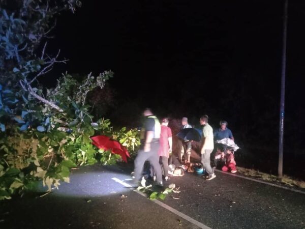 Dalam kejadian pukul 1.15 tengah hari itu, seorang penunggang motosikal maut setelah dihempap pokok yang tiba-tiba tumbang ketika melalui jalan tersebut sementara seorang lagi penunggang cedera ringan.
