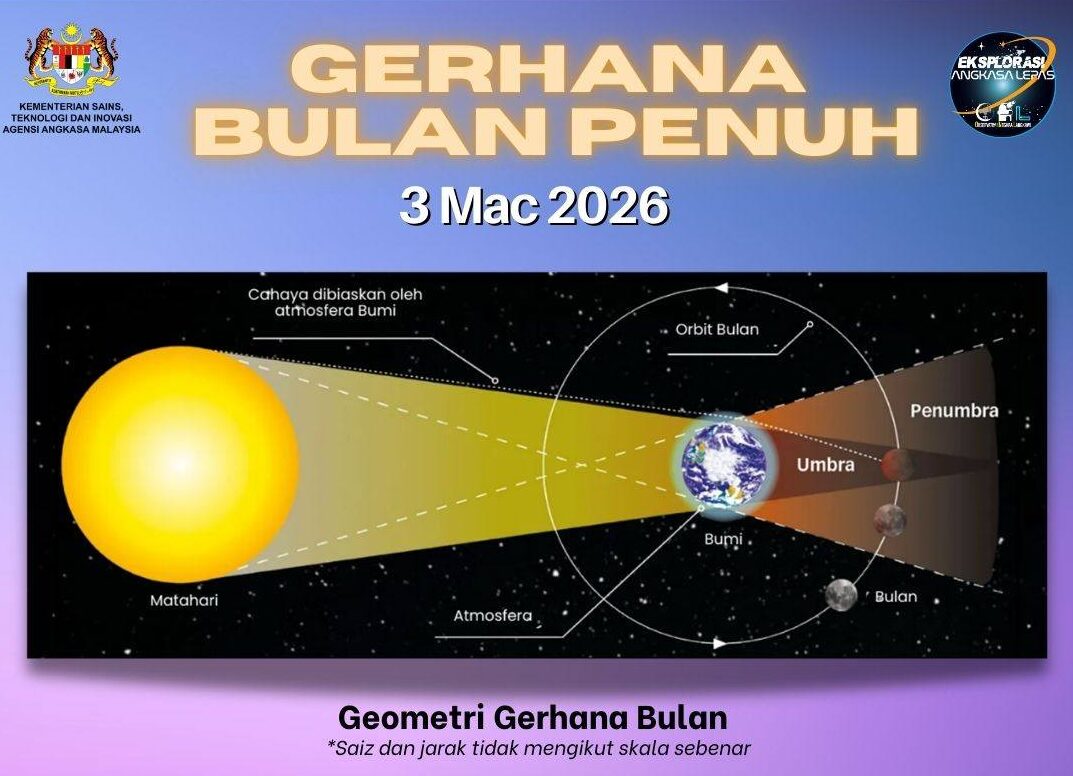 PETALING JAYA: Rakyat Malaysia khususnya di Sabah dan Sarawak berpeluang menyaksikan fenomena ‘bulan berdarah’ berikutan gerhana bulan penuh yang akan berlaku petang ini. Agensi Angkasa Malaysia (MYSA) berkata, fenomena itu hanya berlaku sekali tahun dan gerhana bulan seterusnya dijangka berlaku pada 31 Disember 2028. “Gerhana bulan fasa separa (U1) bermula pada jam 5.50 petang dan seterusnya memasuki fasa penuh (U2) pada 7.04 petang dengan kemuncak gerhana (GE) pada 7.33 malam.…