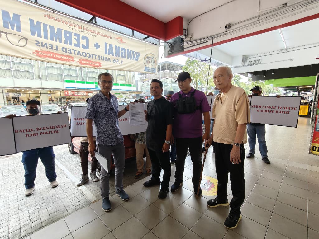 KUALA LUMPUR: Aktivis politik, Faizan Mohd Nor dan pengasas PKR, Ng Lum Yong hari ini mengepalai puluhan peserta berdemo di depan pejabat Invoke Solution milik Datuk Seri Rafizi Ramli bagi menuntut Ahli Parlimen Pandan itu agar bersara daripada politik.
