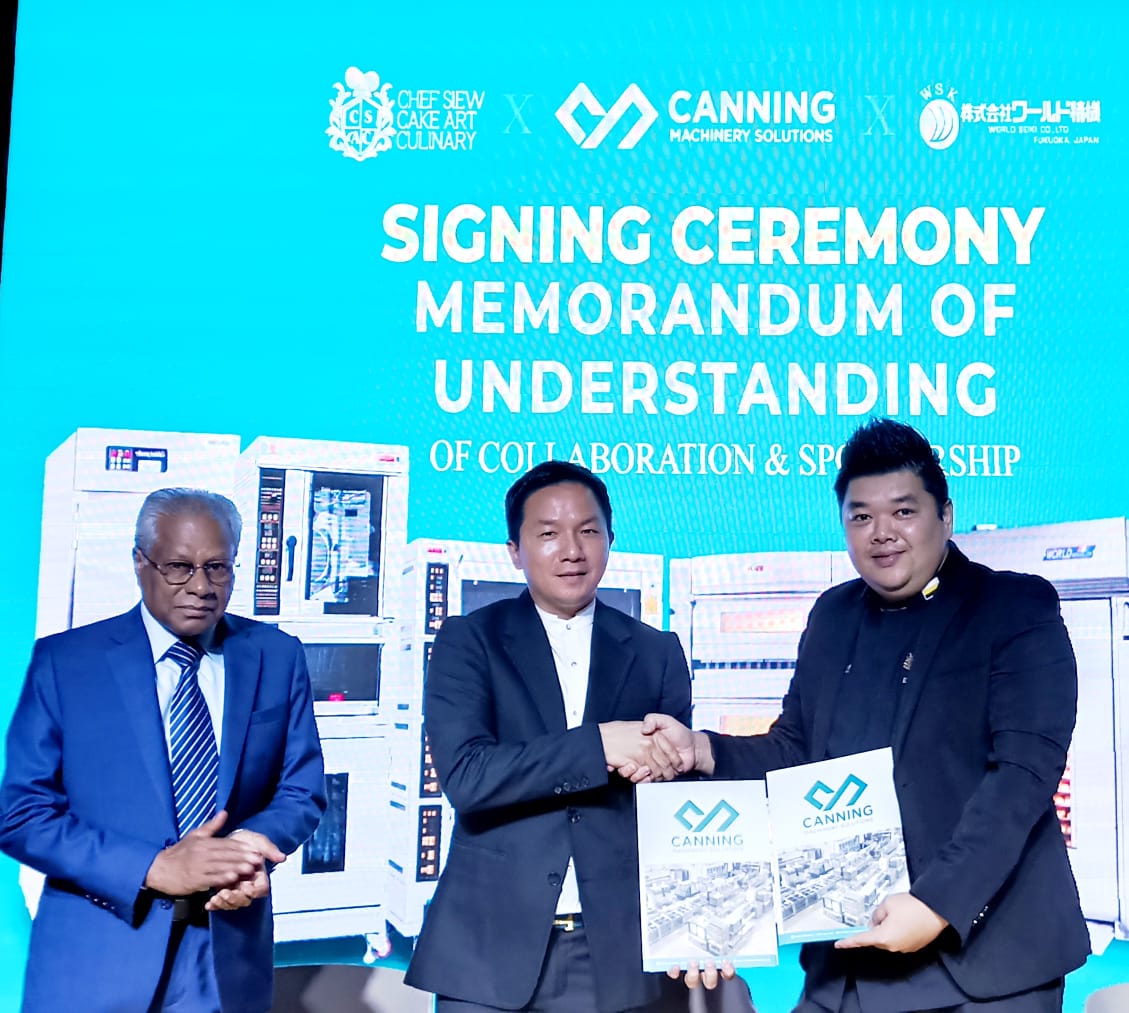 Yang turut hadir Pengarah Urusan Canning Machinery Solutions Sdn. Bhd., Nang Yu Chuan dan Pengasas Chef Siew Cake Art & Culinary Sdn. Bhd., Esben Siew Kok Wai.