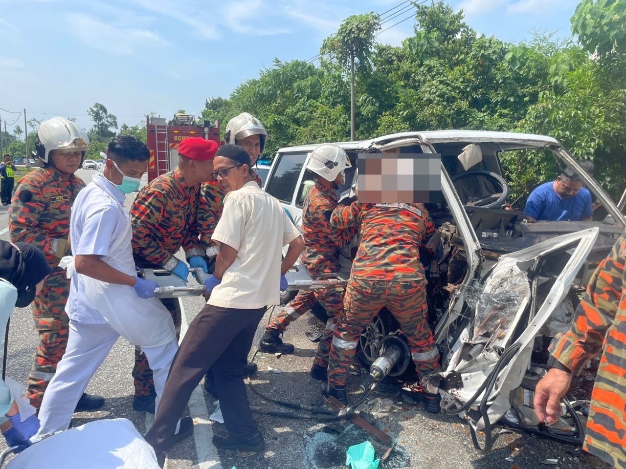 Katanya, sebaik sahaja anggota dan jentera tiba di lokasi kejadian, didapati dua mangsa tersepit dalam van manakala dua yang lain disahkan telah meninggal dunia di tempat kejadian.