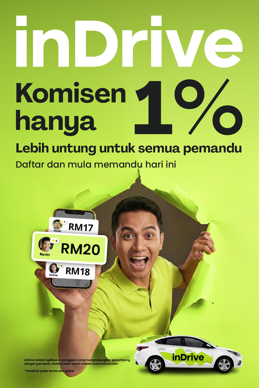 PETALING JAYA: inDrive memperkenalkan inisiatif komisen 1.0 peratus untuk pemandu e-hailing sedia ada dan bakal pemandu di Kuala Lumpur, berkuat kuasa hari ini hingga 31 Mei 2026.
