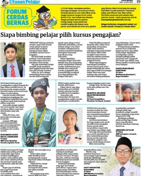 Begitu pandangan kebanyakan pelajar dan golongan muda yang memberi pendapat siapakah individu yang sesuai bagi mereka memilih kursus pengajian. –UTUSAN