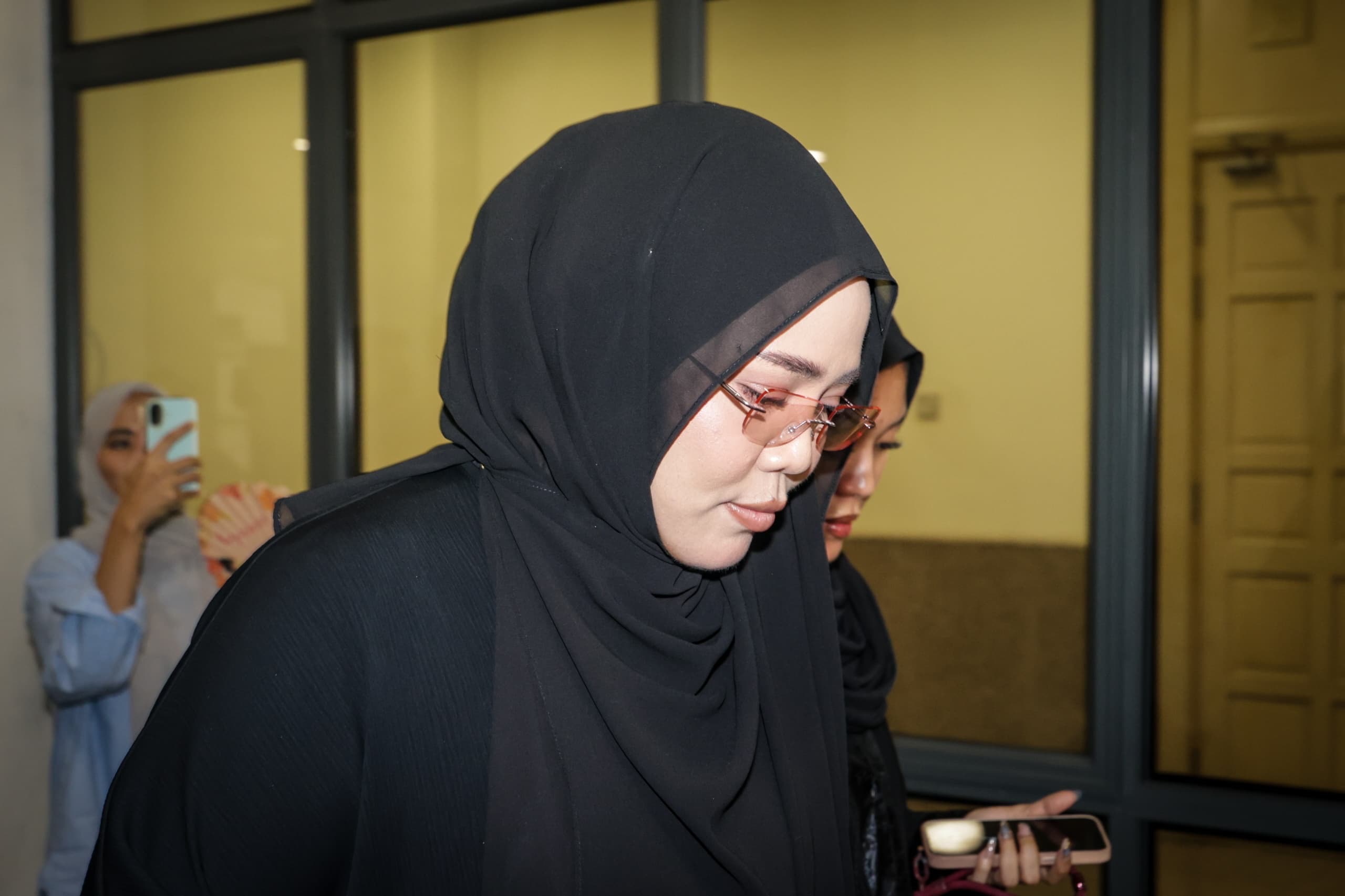 Norreen atau Norreen Iman Abdullah, 32, dilihat hadir mengenakan jubah hitam bagi mengikuti prosiding lafaz cerai yang difailkannya pada April lalu.
