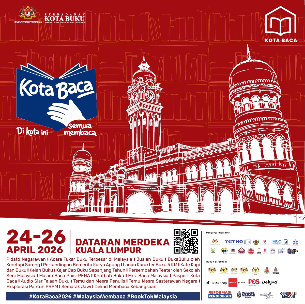 KUALA LUMPUR: Perbadanan Kota Buku akan menganjurkan program Kota Baca 2026 pada 23 hingga 26 April ini di Dataran Merdeka sebagai usaha memperkukuh budaya membaca dalam kalangan masyarakat. Program yang dilaksanakan dengan kerjasama Kementerian Pendidikan itu merupakan sebuah acara literasi berskala nasional bersempena Hari Buku dan Hak Cipta Sedunia. Menurut kenyataan Perbadanan Kota Buku, penganjuran tersebut menggabungkan elemen fizikal dan digital secara bersepadu bagi menggalakkan penyertaan pelbagai lapisan masyarakat. Katanya,…