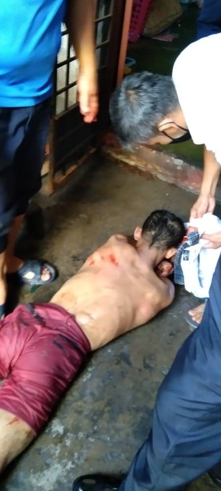 BERUAS: Penduduk yang tinggal di Jalan Pelantar, Pantai Remis dekat sini, gempar apabila seorang lelaki warga Myanmar tiba-tiba mengamuk dan bertindak agresif sehingga mencederakan diri sendiri sehingga parah pagi tadi.