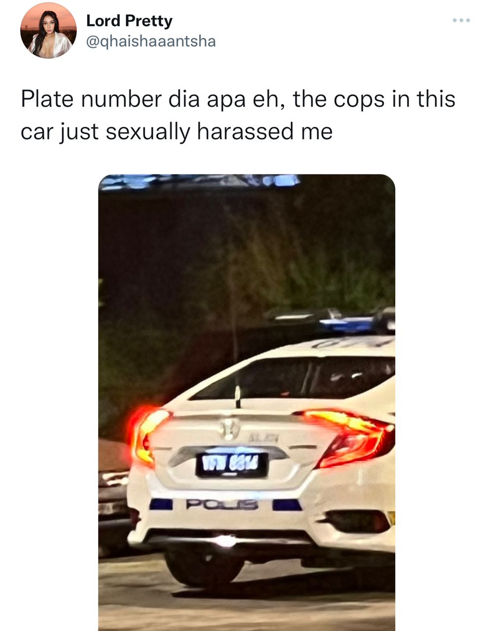 Justeru, Ketua Polis Daerah Petaling Jaya, Asisten Komisioner Mohamad Fakhrudin Abdul Hamid memohon pemilik akaun Twitter ‘Lord Pretty’ yang mendakwa anggota polis menaiki polis melakukan perbuatan berkenaan terhadapnya diminta tampil membuat laporan polis.