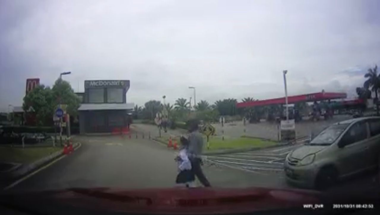 Terdahulu, tular beberapa klip video menunjukkan seorang lelaki memegang dan melarikan seorang kanak-kanak lengkap berpakaian sekolah agama.