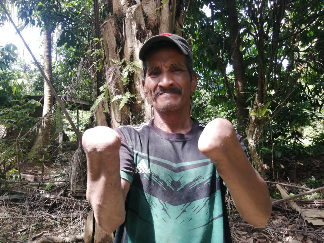 Malah, Abdul Halim, 48, dari Kampung Padang Setar di sini turut mengambil upah mengait kelapa sawit, berkebun dan menoreh getah di sebalik statusnya sebagai orang kurang upaya (OKU).