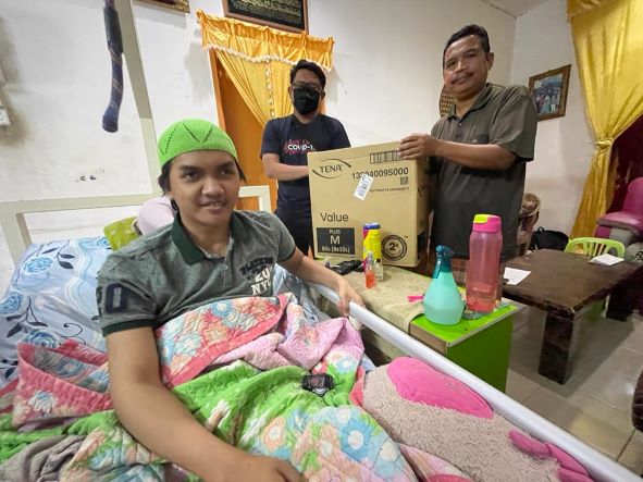 Terdahulu, Muhammad Faiz Hafizuddin menerima kunjungan Pengerusi Volunteer I Care (VIC), Muhammad Afiq Aiman Shukri yang prihatin terhadap nasibnya dan turut menyumbang lampin pakai buang bagi meringankan beban keluarga pemuda itu.