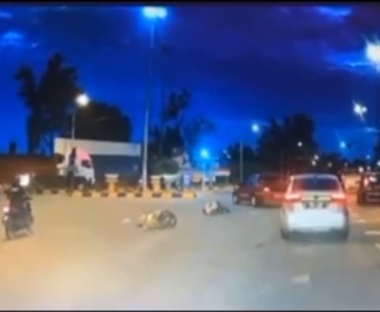 Menerusi video berdurasi 22 saat itu, motosikal mangsa yang tiba di persimpangan lampu isyarat tiba-tiba dirempuh sebuah motosikal lain sehingga menyebabkan mangsa terpelanting.
