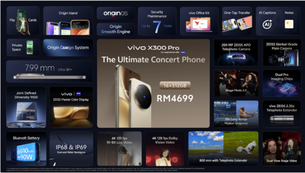 Pra-tempahan kini dibuka di semua kedai konsep vivo dan platform dalam talian dengan hadiah eksklusif bernilai sehingga RM2,872, termasuk aksesori tambahan seperti Telephoto Extender Kit dan Grip Kit khas untuk pemilik siri X300.