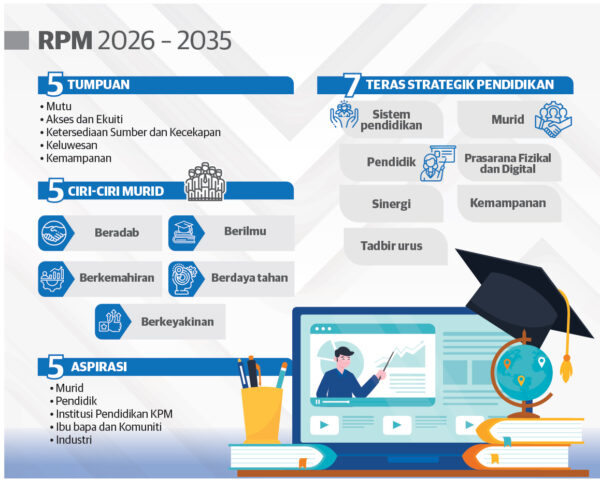 Seiring itu, pelaksanaan Rancangan Pendidikan Malaysia (RPM) 2026 – 2035 menandakan kesediaan Malaysia melangkah ke dekad seterusnya dengan satu lonjakan besar. Rancangan pendidikan baharu ini bukan sekadar kesinambungan dasar terdahulu, sebaliknya dirangka bagi memastikan sistem pendidikan negara kekal berkaitan, inklusif dan berdaya saing pada peringkat global.