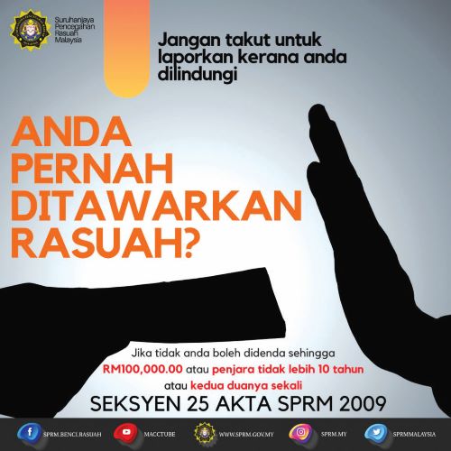 Lapor rasuah atau dihukum! Inilah perkara yang perlu diterapkan dalam minda setiap warganegara. Jika sebelum ini, peringatan kegagalan melaporkan rasuah itu boleh dianggap sebagai amaran sahaja, namun kini perkara tersebut telah diambil tindakan sewajarnya. Buktinya, baru-baru ini seramai lima kakitangan Kementerian Kewangan dihukum denda oleh Mahkamah Sesyen Kuala Lumpur selepas mengaku salah tidak melaporkan kepada pihak berkuasa setelah ditawarkan rasuah. Mereka menjadi individu pertama yang didakwa gagal melaporkan tawaran kes…