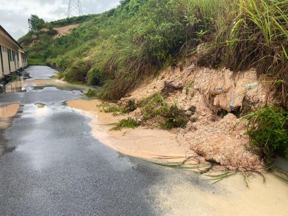 Kami membuat laporan kepada pihak-pihak berkenaan dan mereka hanya menutup cerun bukit dengan kanvas dan meletakkan kon supaya orang ramai tidak melalui kawasan tersebut.