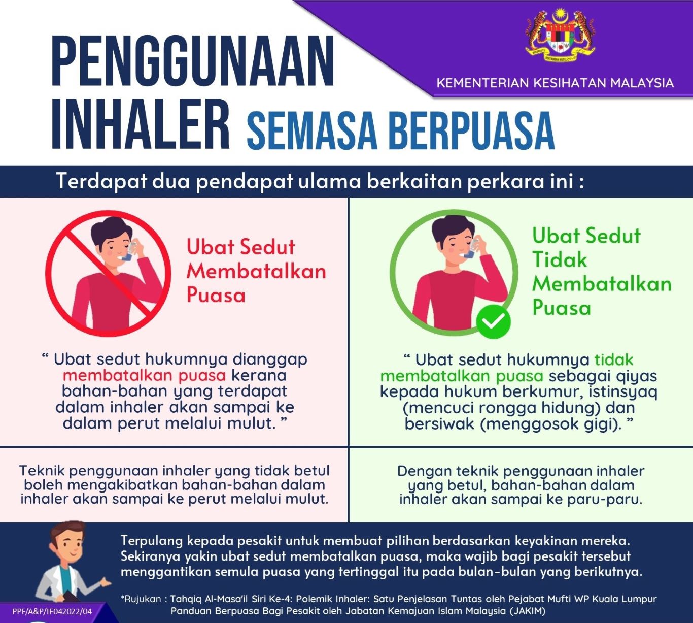 Dalam pada itu, terdapat dua pendapat mengenai batal atau tidak puasa dengan penggunaan inhaler (alat sedut).