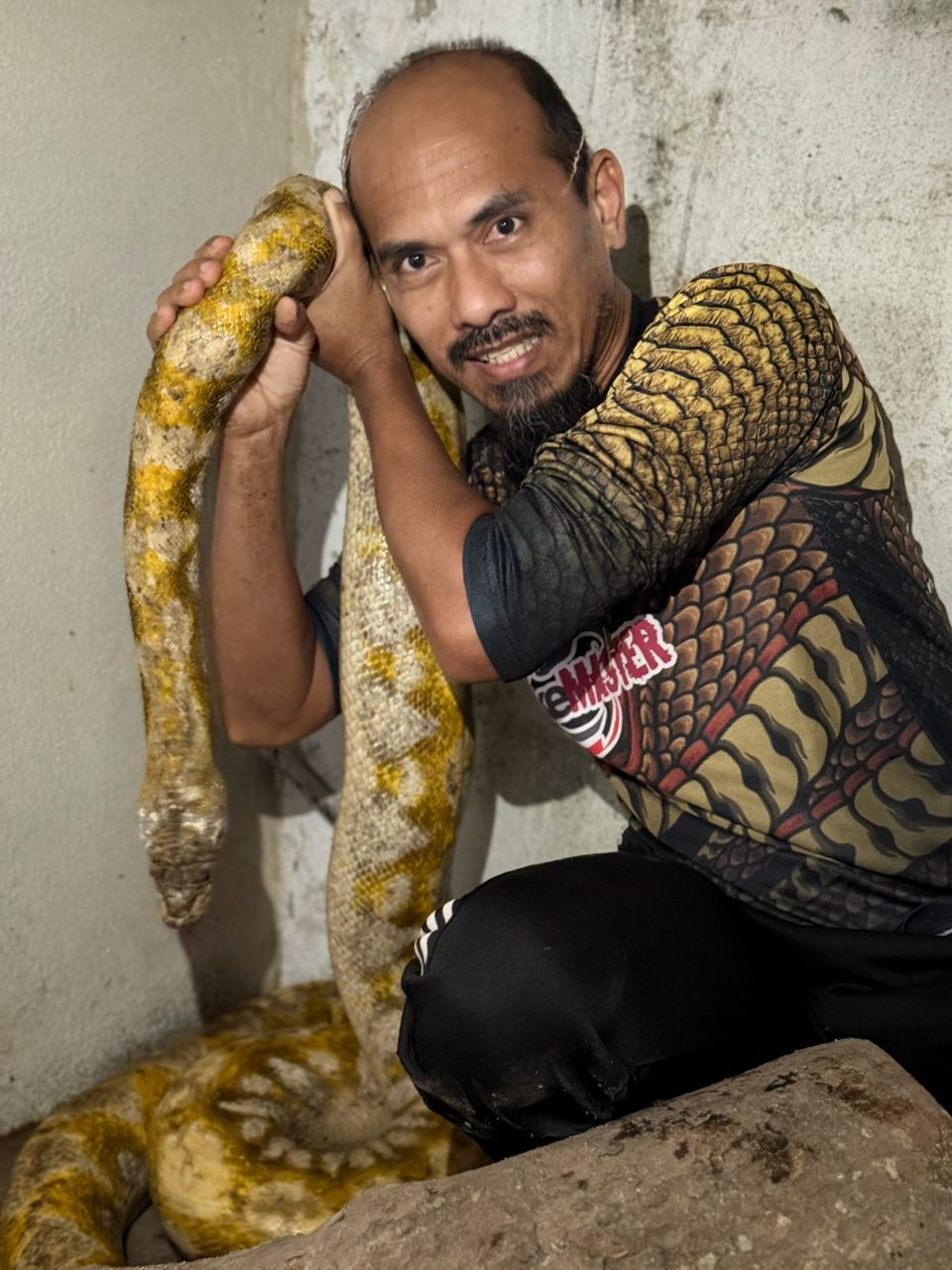 Bagi sesetengah orang, reptilia ini mungkin nampak sangat menggerunkan, malah mungkin cabut lari jika terserempak. Tetapi tidak bagi Mohd. Hamizan Nawai, 48, yang menjadikan ular sawa batik sepanjang 10 kaki ini sebagai haiwan kesayangannya. Pada awalnya, dia bertemu dengan si batik itu ketika menyertai misi penyelamatan apabila reptilia itu masuk ke rumah jirannya, awal tahun lalu. Tanpa disangka, si batik berwarna kuning dengan corak unik itu berjaya memikat hatinya, lalu…