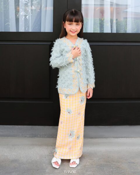 Yang membuatkan koleksi ini lebih istimewa ialah adanya versi Nuri Kurung Kids dalam warna yang sama. Bayangkan pagi raya, ibu dan anak keluar rumah sedondon dalam Muted Sage yang lembut, berjalan menuju rumah nenek dengan senyuman yang sama lebar.