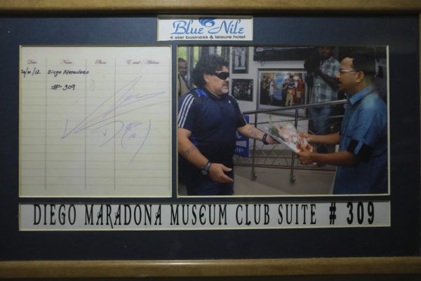 Apa saja barang yang Maradona sentuh di Bilik 309 semuanya dijadikan bahan pameran. – AFP