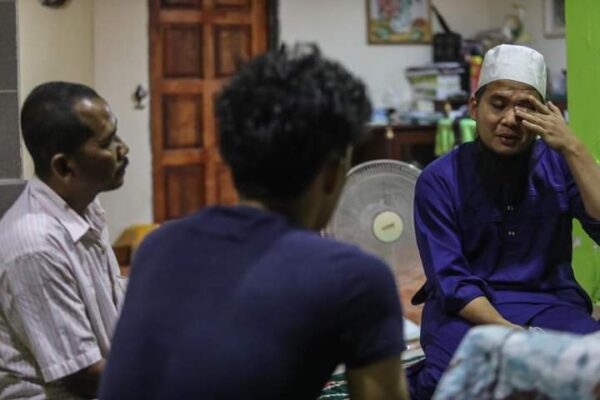 KUALA LUMPUR: Pendakwah, Ebit Irawan Ibrahim Lew atau Ustaz Ebit Lew tidak dapat menahan sebak ketika menziarahi bintang bola sepak kebangsaan, Muhamad Syafiq Ahmad di Pendang, Kedah semalam.