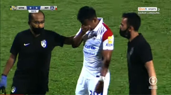 Kecederaan tersebut membuatkan pemain terbaik negara ketika ini tidak dapat meneruskan permainannya.