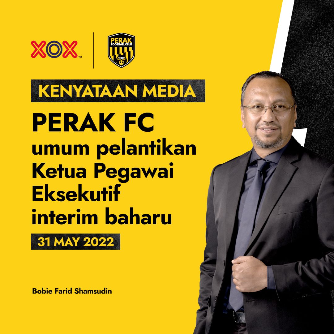 IPOH: XOX Pro Sport Sdn. Bhd., anak syarikat XOX Berhad mengumumkan pelantikan Bobie Farid Shamsudin sebagai Ketua Pegawai Eksekutif (CEO) sementara Perak FC.