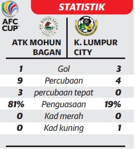 Kapten skuad The City Boys itu memainkan peranan penting ketika membantu KL City menang 3-1 ke atas ATK Mohun Bagan FC biarpun beraksi di depan penyokong tuan rumah di Kolkata, India kelmarin.