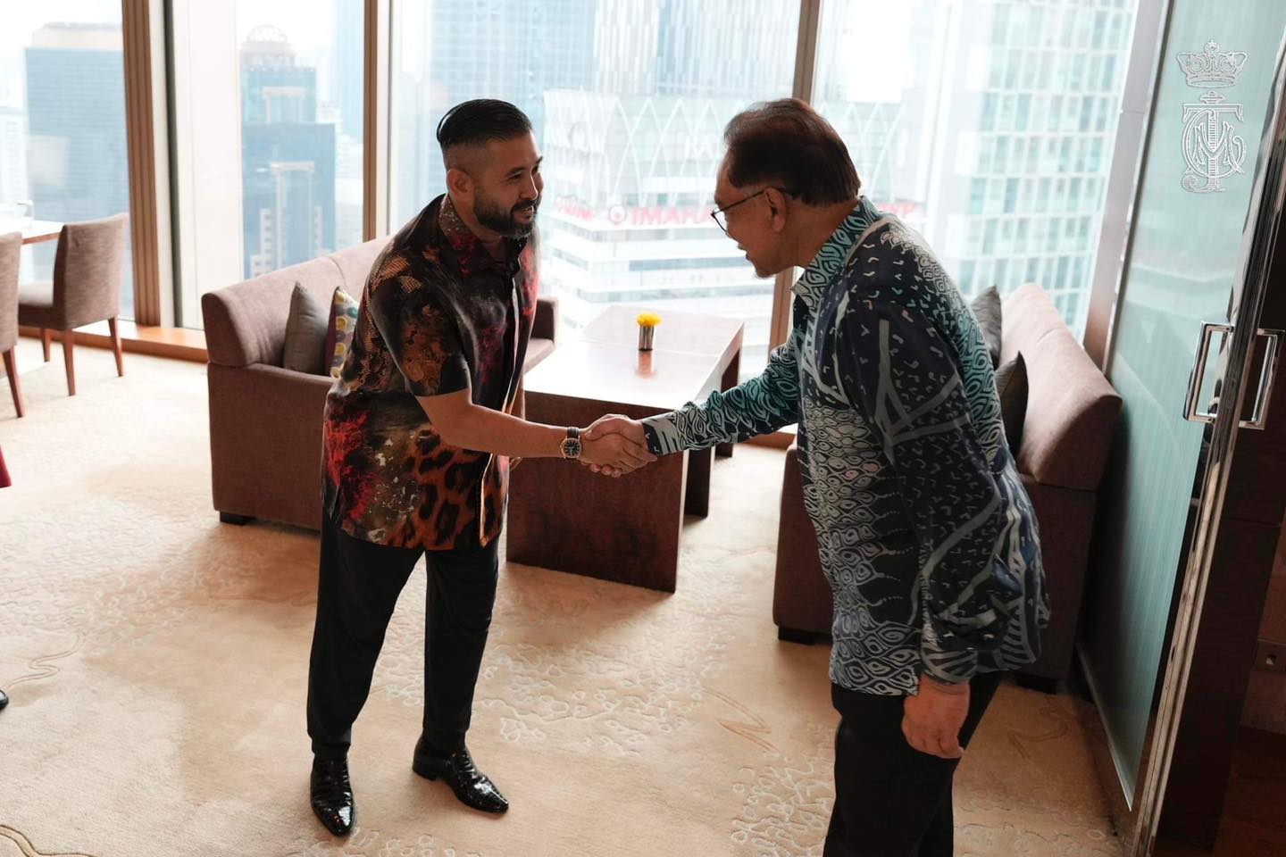 PETALING JAYA: Tunku Mahkota Johor, Tunku Ismail Sultan Ibrahim berkenan menerima menghadap Perdana Menteri, Datuk Seri Anwar Ibrahim.