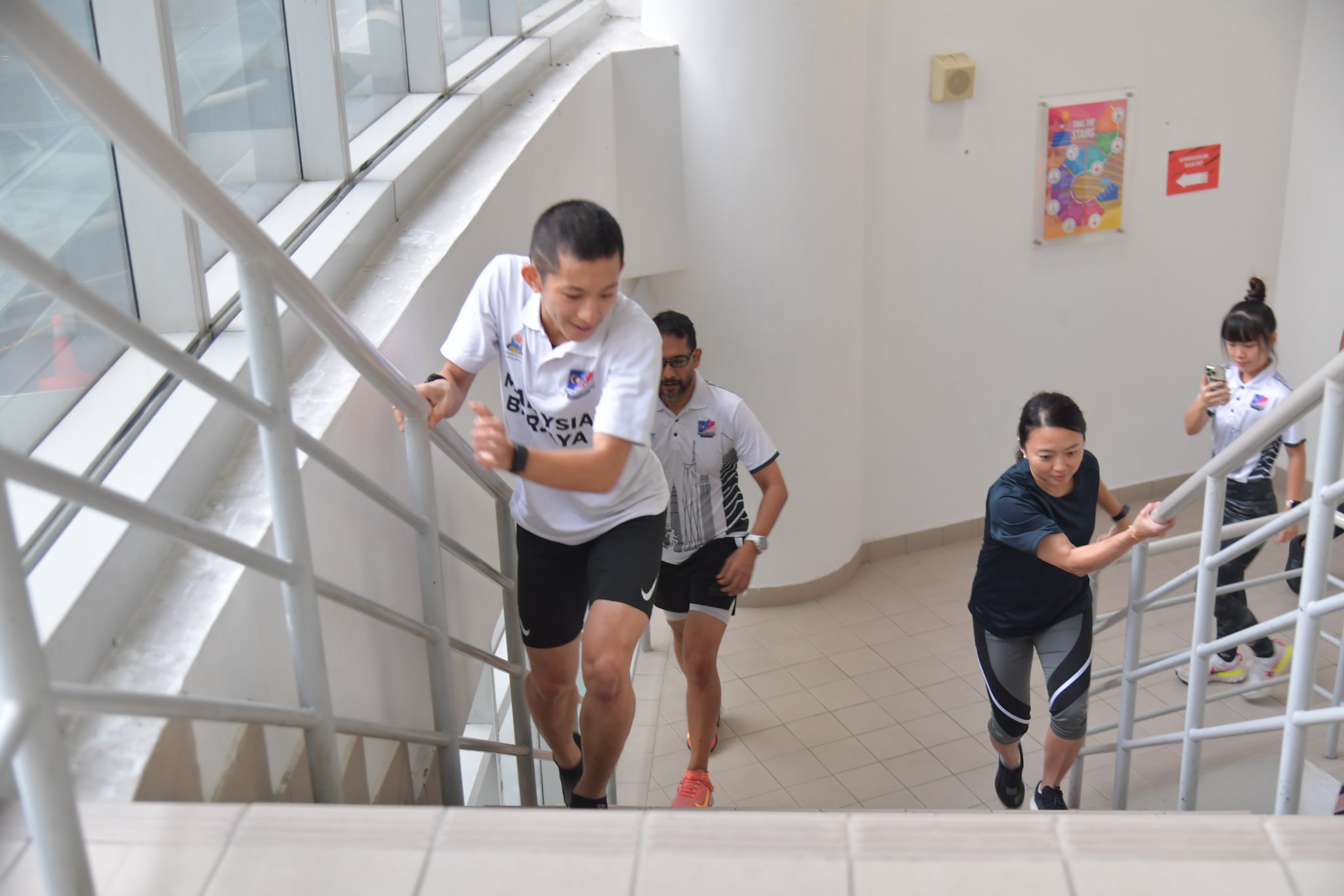 “Menteri Belia dan Sukan bersama juara pelari menara nombor satu dunia, Soh Wai Ching menawan Menara KBS setinggi 17 tingkat pagi tadi,” kata KBS di laman Twitternya hari ini.