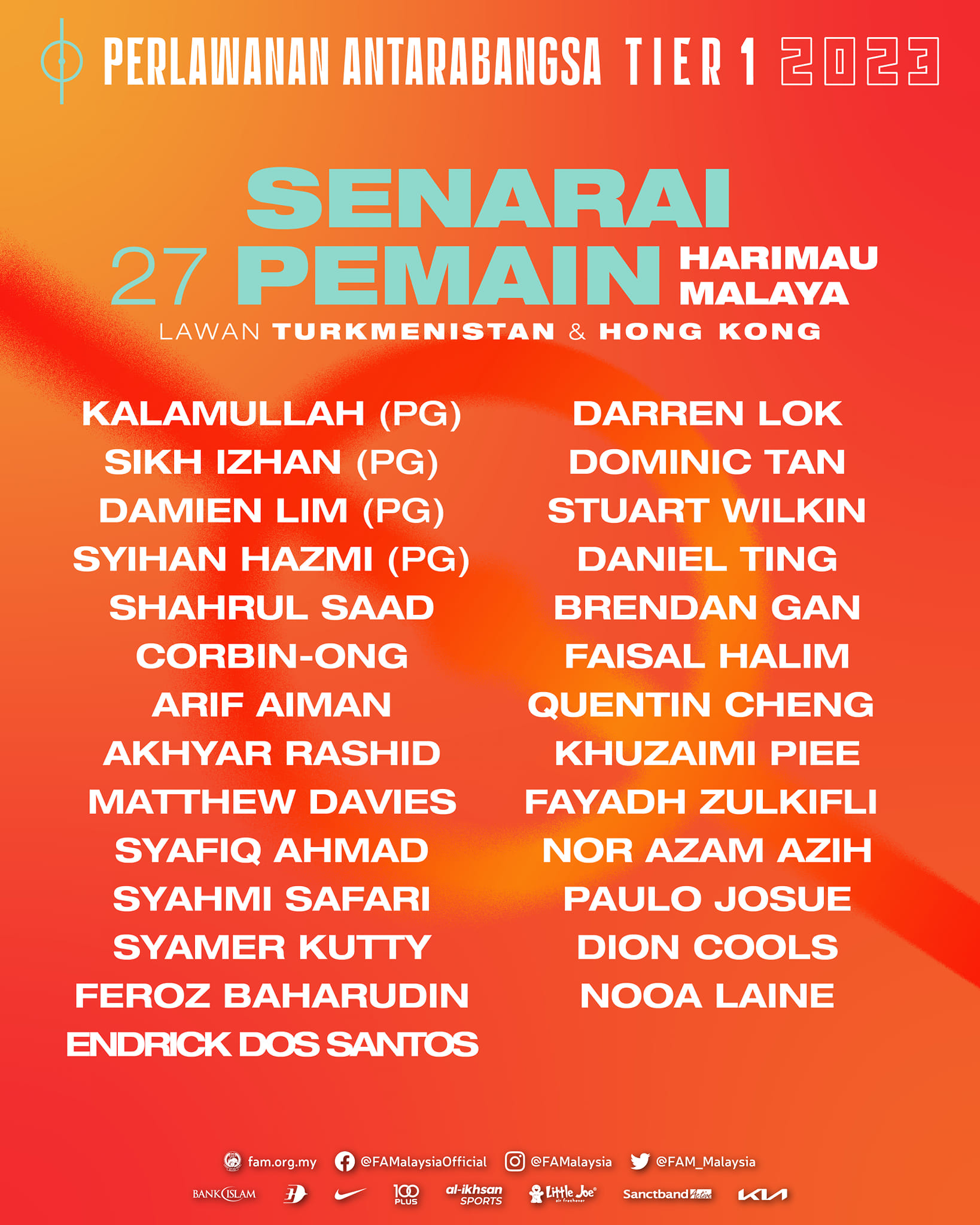 Pemain akan mula berkumpul di Johor Bahru, Sabtu ini manakala perlawanan persahabatan dijadual berlangsung pada 23 Mac berdepan Turkmenistan dan Hong Kong (28 Mac) di Stadium Sultan Ibrahim, Iskandar Puteri, Johor.