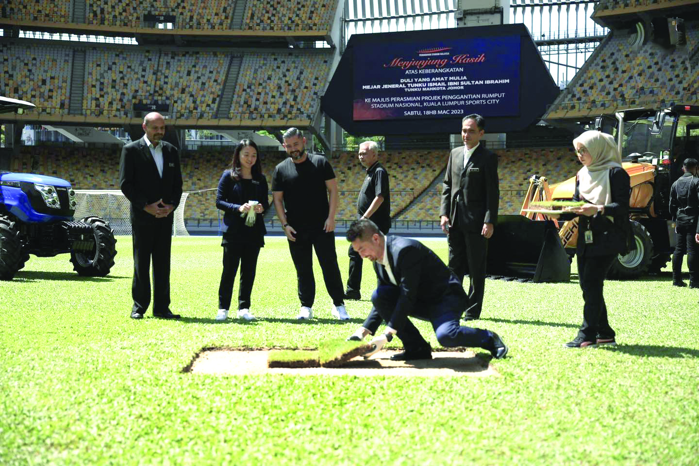 Proses transformasi rumput dan baik pulih SNBJ akan bermula 1 April ini dan dijangka akan siap dalam tempoh enam bulan. Kali terakhir rumput di SNBJ ditukar adalah pada tahun 2015. – UTUSAN ONLINE
