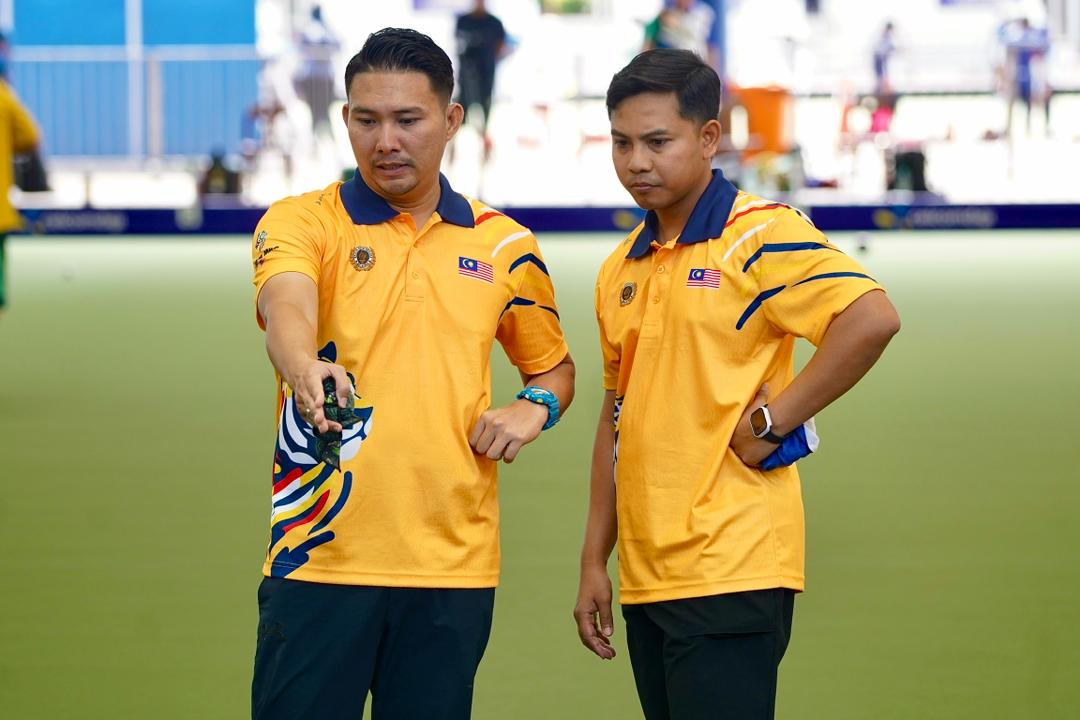 KAPSYEN: SOUFI (kiri) dan Izzat sakan beraksi dalam acara perseorangan lelaki kejohanan Piala Dunia Boling Padang 2025, hari ini.