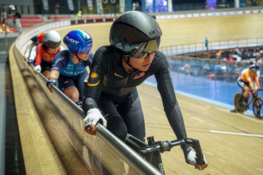 NILAI: Pelumba endurance wanita negara, Nur Aisyah Mohamad Zubir mahu bangkit menebus kekecewaan dalam acara omnium pada Piala Dunia Trek di Velodrom Nasional, Nilai hari ini.