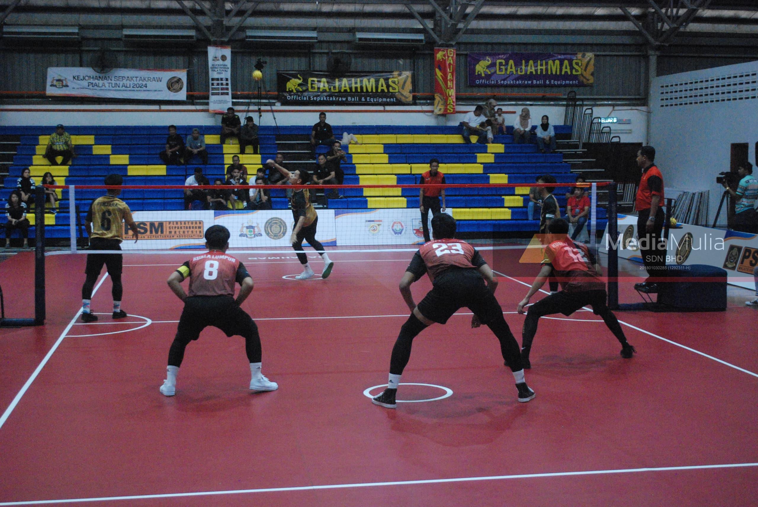 MELAKA: Negeri Sembilan dan Kuala Lumpur (KL) melangkah bergaya ke suku akhir acara regu lelaki Kejohanan Sepak Takraw Piala Tun Ali di Dewan Bola Keranjang Majlis Bandaraya Melaka Bersejarah (MBMB), Bukit Serindit di sini, semalam.