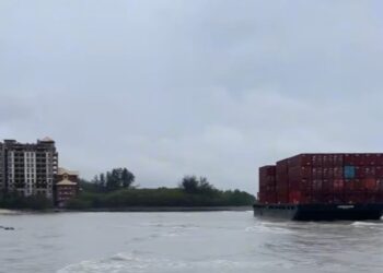 Ribut Senyar tolak kapal kontena hampir ke pantai Port Dickson