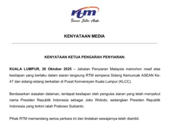 RTM mohon maaf atas kesilapan nama Presiden Indonesia